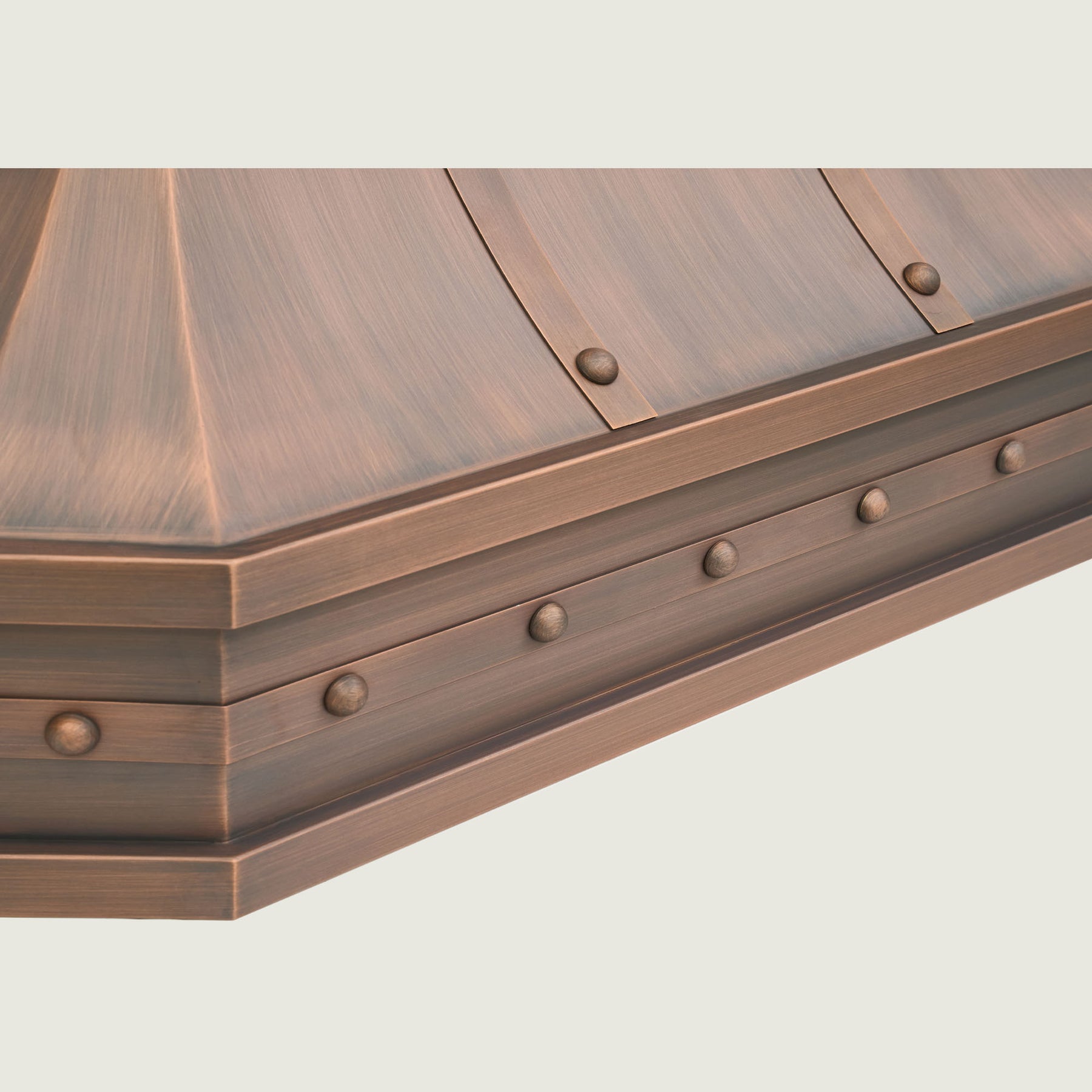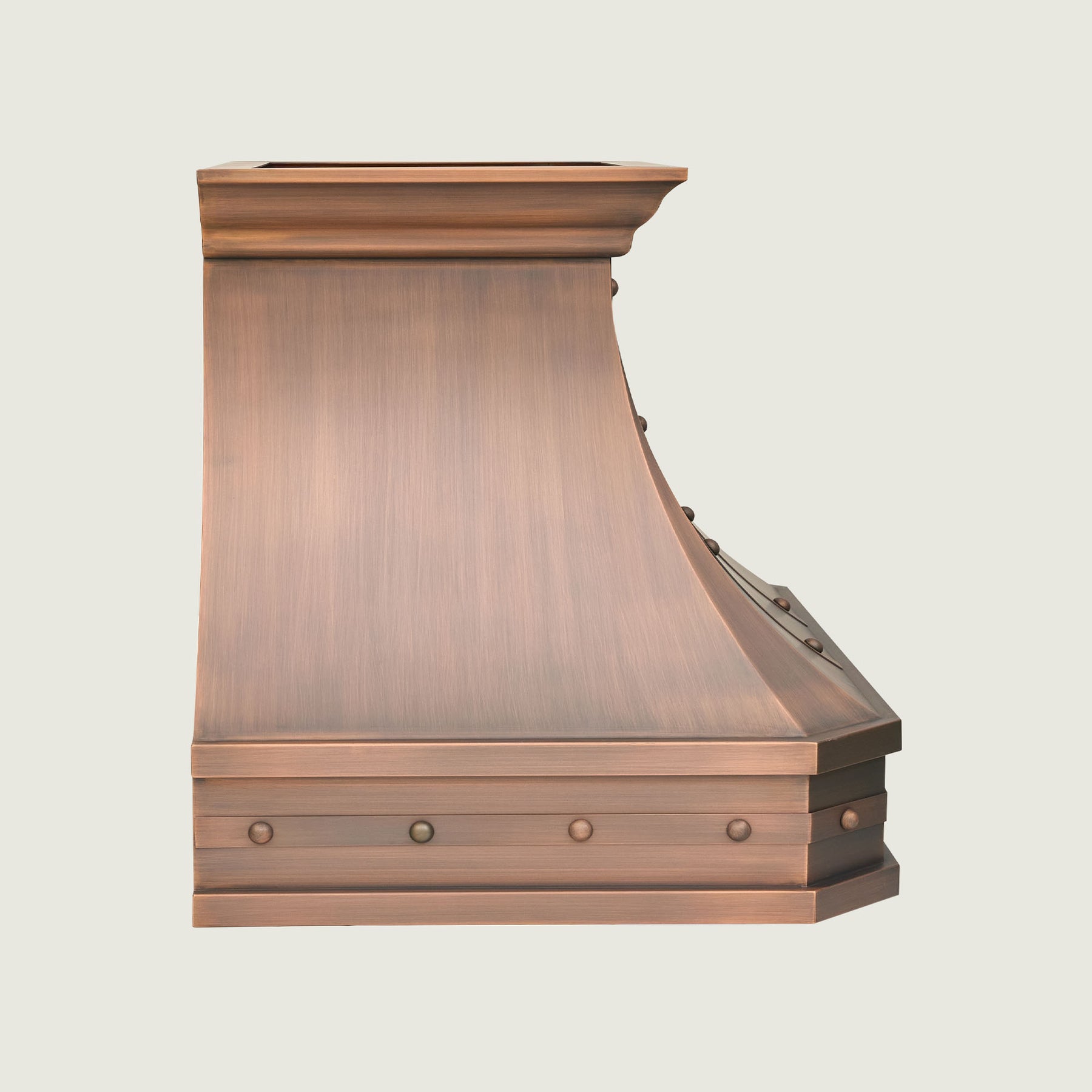 • [Handcrafted & Premium Material] The range hood is handcrafted from 16 Gauge solid copper (99.9% pure virgin copper, not recycled) by skilled artisan-crafted. We can handmade different patterns on the decorative apron, with texture like Smooth, Light Hammered, Beehive Hammered, available in colors such as Copper, Natural Copper, Oil Rubbed Bronze, Fire Hood Hammered, etc. A custom hood with elegant design, decorative trims, apron, straps and rivets will make your kitchen unique and eye-catching.